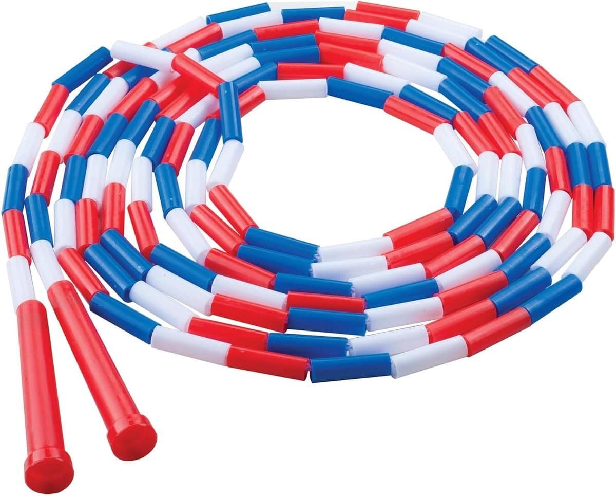 Gesegmenteerd Springtouw – Fitness Touw Cardio – Ritme Coördinatie Verbeteren – Traditionele Kunststof Segmenten – 46 m – Rood Wit Blauw