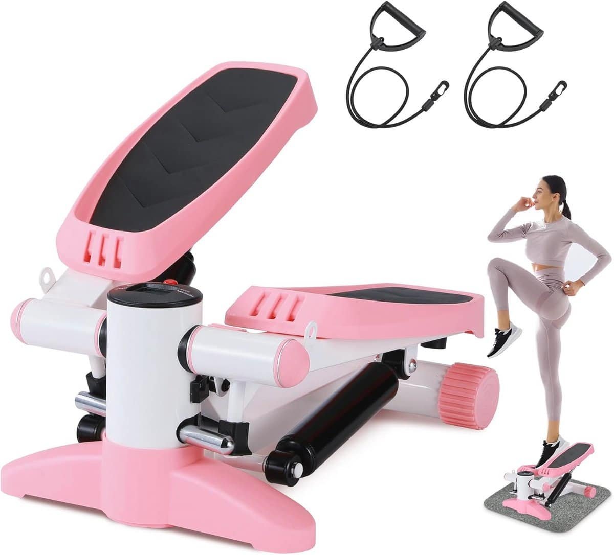 Mini Stepper voor Thuis – Multifunctionele Cardio Trainer met LCD-display en Weerstandsbanden – Compact en Stille Oefenapparaat tot 150 kg