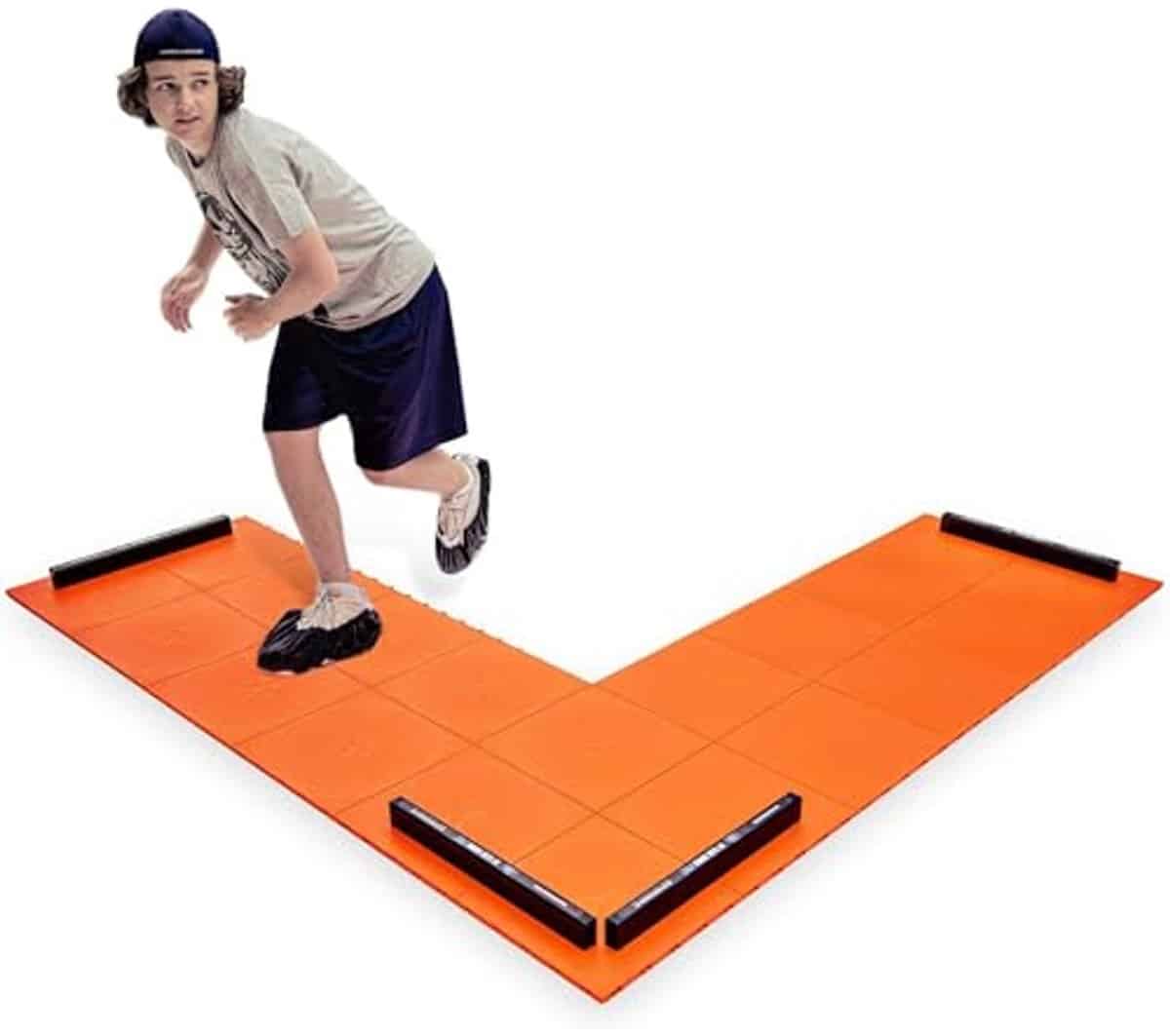 Verbeter je kracht en balans met deze schuifplank. Ideaal voor cardio-oefeningen en het trainen van been-, bil- en kernspieren. De schuifplank is ontworpen om een echte ijsomgeving na te bootsen, zodat je soepel kunt glijden. Dit compacte en draagbare apparaat is perfect voor binnen- en buitentraining. Het product wordt geleverd met 20 oranje tegels, 4 stoppers (bumpers), een paar pantoffels (booties) en een antislip rubberen mat voor extra veiligheid. De unieke antislip onderlaag zorgt ervoor dat de plank niet verschuift tijdens de training. Deze schuifplank is geschikt voor spelers van alle leeftijden en vaardigheidsniveaus, en je kunt de lengte aanpassen door tegels toe te voegen of te verwijderen. Train met de bijbehorende app voor een interactieve ervaring en verbeter je prestaties het hele jaar door.