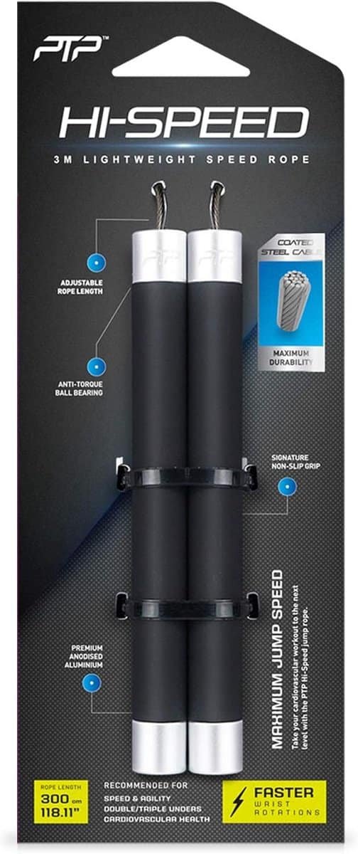 Dit bijzonder lichte springtouw zorgt voor een moeiteloze grip en soepele polsbeweging dankzij de speciaal ontwikkelde handvatten. Het touw heeft een uitstekende snelheid, waardoor het perfect geschikt is voor snelheidsoefeningen, behendigheidstraining en cardiovasculaire training. De kabellengte kan eenvoudig worden aangepast aan de lichaamslengte.
