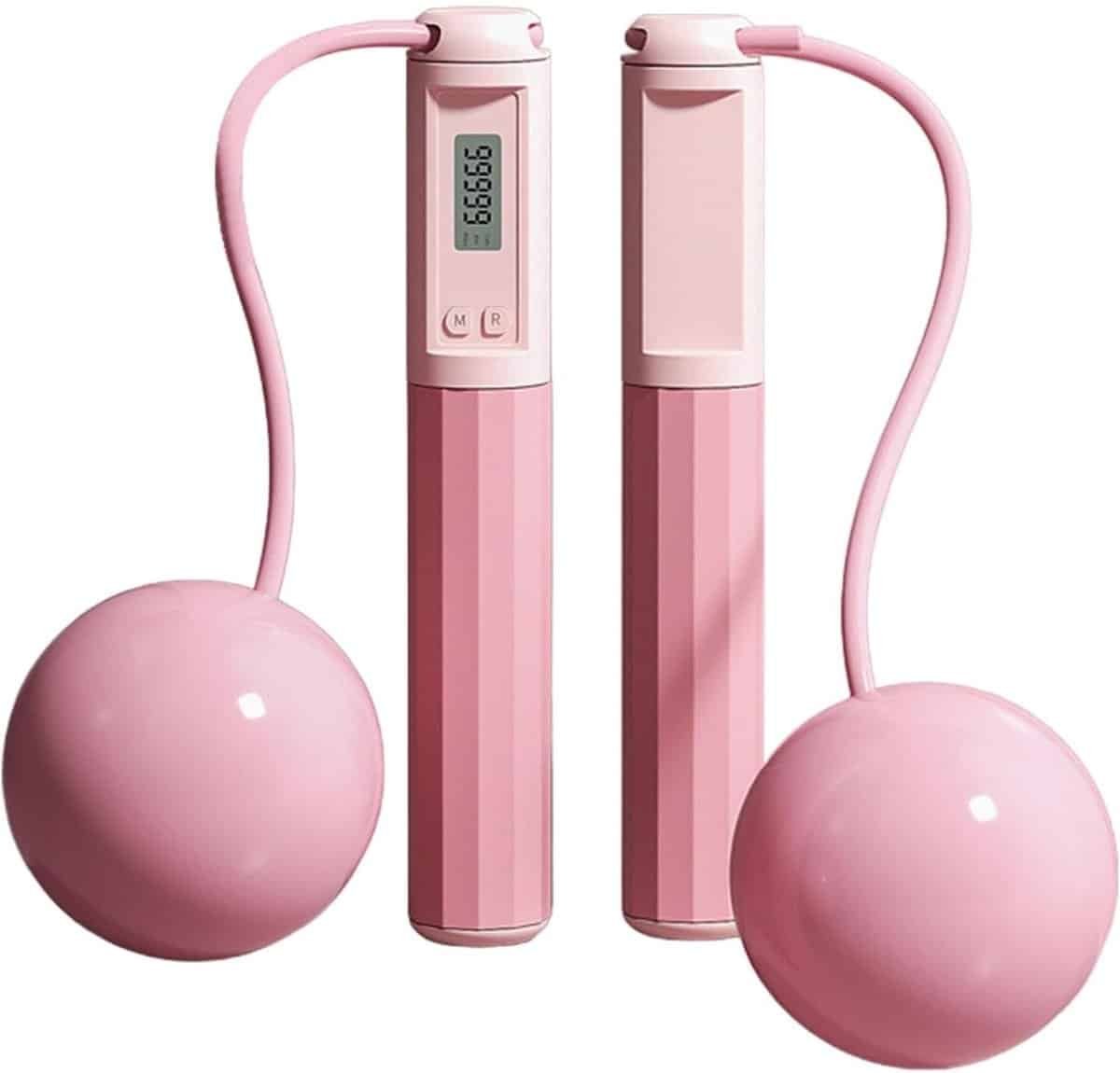 Springtouw met Teller – Fitness Touw Cardio – Effectieve Training – Ingebouwd LED Display – Verstelbare Lengte – Roze