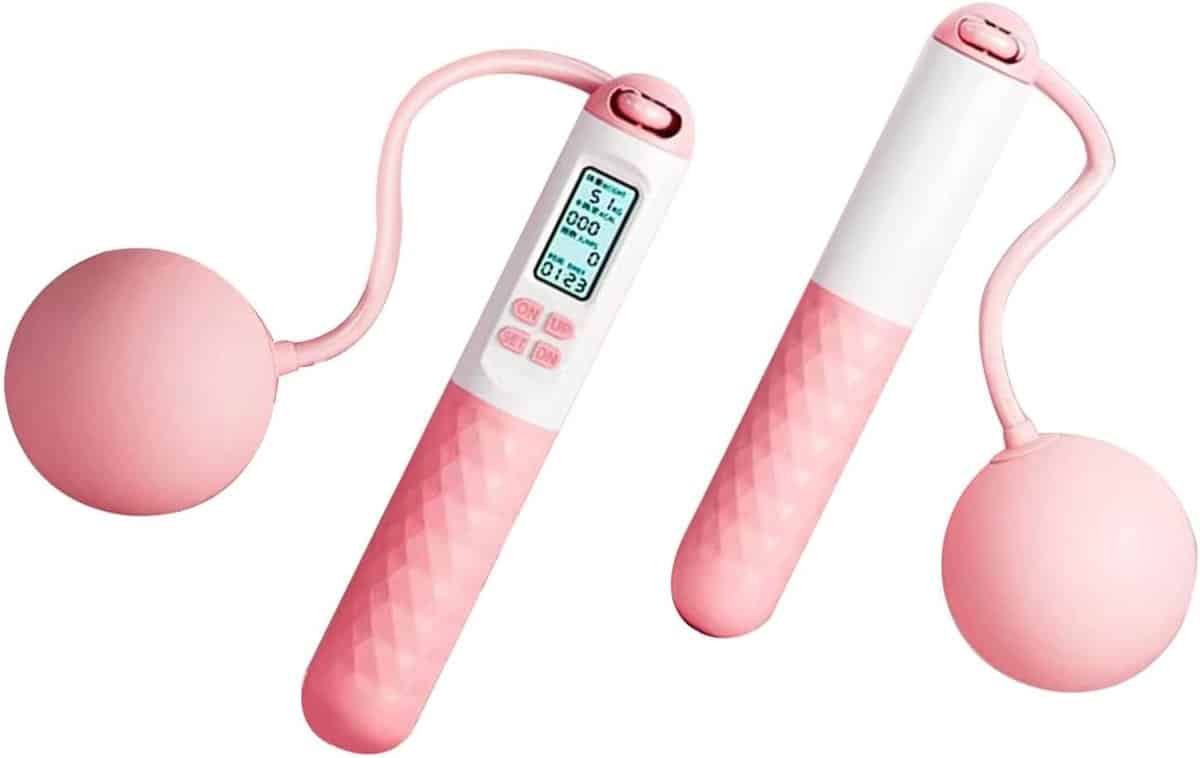 Springtouw zonder touw – Fitness touw – Cardio training – Digitale teller – Verstelbaar – Roze wit