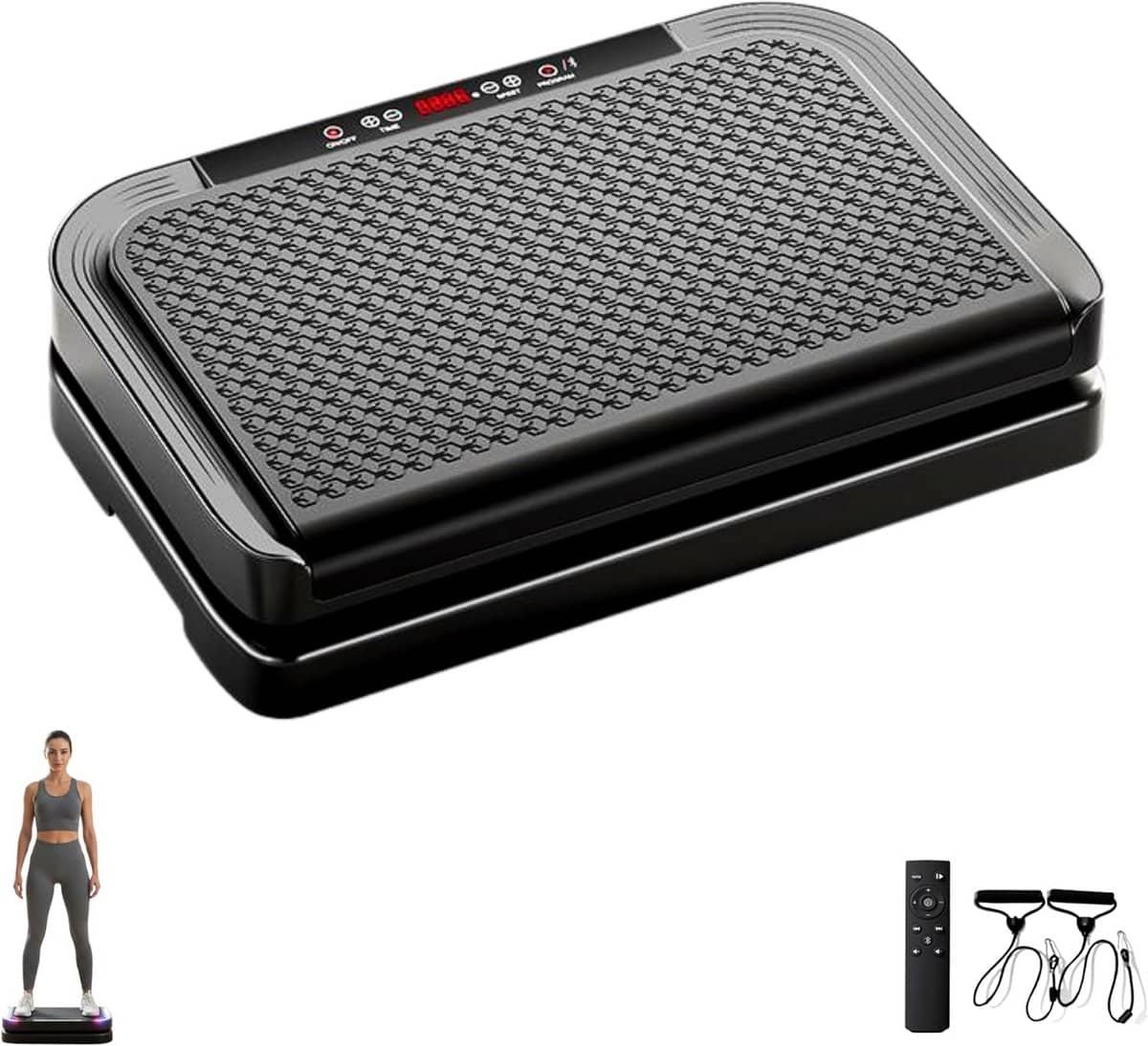 Transformeer uw woonkamer in een persoonlijke fitnessstudio en bereik uw gezondheidsdoelen met dit geavanceerde vibratieplatform. Ervaar de toekomst van thuis sporten en voel het verschil! Herkent u het gevoel dat u thuis niet de juiste faciliteiten heeft om effectief te sporten en uw lichaam te verstevigen? Mist u de motivatie of de juiste apparatuur om uw fitnessroutine naar een hoger niveau te tillen? Veel mensen worstelen met het vinden van tijd en middelen voor de sportschool, terwijl ze toch graag fitter, sterker en gezonder willen worden. Het kan frustrerend zijn om vooruitgang te willen boeken, maar beperkt te worden door gebrek aan geschikte trainingsapparatuur thuis. Dit vibratieplatform biedt de perfecte oplossing om uw fitnessroutine te revolutioneren, gewoon vanuit het comfort van uw eigen huis. Gebruik het voor een breed scala aan oefeningen die gericht zijn op spierversteviging, vetverbranding, verbetering van de bloedsomloop en algemeen welzijn. Plaats het in uw woonkamer, slaapkamer of zelfs kantoor voor korte, intensieve trainingssessies. De meegeleverde elastische banden maken het mogelijk om uw trainingen uit te breiden met krachtoefeningen, waardoor u uw armen, schouders en rug effectief kunt trainen terwijl u op het platform staat. Geniet van uw favoriete muziek tijdens het sporten dankzij de ingebouwde Bluetooth-luidspreker, die de sfeer verhoogt en u motiveert om net dat beetje extra te geven. De veelkleurige LED-lampjes die synchroniseren met de muziek voegen een extra dimensie toe aan uw trainingservaring. Ervaar ongekend comfort en gemak tijdens uw trainingen. Dit platform is ontworpen met uw welzijn in gedachten, waardoor u niet alleen uw spieren versterkt, maar ook uw herstel bevordert en spierpijn na inspanning vermindert. Verbeter uw balans, stabiliteit en mobiliteit, wat essentieel is voor dagelijkse activiteiten en het voorkomen van blessures. De verbeterde bloedsomloop zorgt voor meer energie en een sneller herstel, zodat u zich elke dag fitter voelt. Het verstevigen en vormen van uw spieren wordt een plezierige ervaring, waarbij u zichtbare resultaten behaalt zonder de noodzaak van zware gewichten of intensieve cardio-sessies. Het antislipoppervlak zorgt ervoor dat u altijd veilig en stabiel kunt trainen, ongeacht de intensiteit van uw workout. Een uniek kenmerk van dit vibratieplatform is de indrukwekkende variëteit aan instellingen, met maar liefst 200 verschillende intensiteitsniveaus. Dit stelt u in staat om de training volledig aan te passen aan uw persoonlijke fitnessniveau en specifieke doelen, van zachte vibraties voor herstel en massage tot krachtige trillingen voor intensieve spierversteviging en vetverbranding. De bediening is uiterst eenvoudig dankzij het intuïtieve LED-touchscreen en de meegeleverde afstandsbediening, waarmee u moeiteloos de snelheid, tijd en programma’s kunt aanpassen zonder uw training te onderbreken of te hoeven bukken. De stevige constructie ondersteunt een gewicht tot 200 kg, wat de duurzaamheid en veiligheid van het apparaat garandeert voor een breed scala aan gebruikers. De ingebouwde magnetische kralen op het platform bieden een unieke massage-ervaring voor uw voeten tijdens het trainen, wat helpt bij het stimuleren van belangrijke punten en het verminderen van vermoeidheid. Wacht niet langer om de eerste stap te zetten naar een fitter en gezonder leven. Bestel vandaag nog dit veelzijdige vibratieplatform en ontdek hoe eenvoudig en effectief thuis sporten kan zijn!