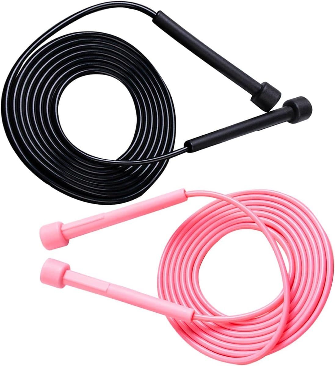 Verstelbare Springtouwen 280 cm - 2 stuks PVC Fitness Rope voor Cardio, Conditiesport en Personal Training - Draaibare Kogellagers, Antislip Handvatten - Zwart & Roze