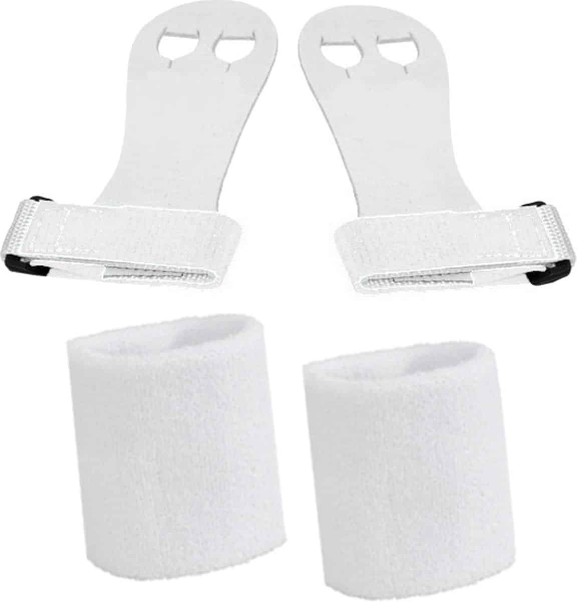 Turnleertjes Wit maat 1/S (1 paar) plus Polsbanden Wit (1 paar) Beginners Leertjes Grips Turnen Gymnastiek Crossfit Leer Bescherming Handen Brug Rekstok Ringen