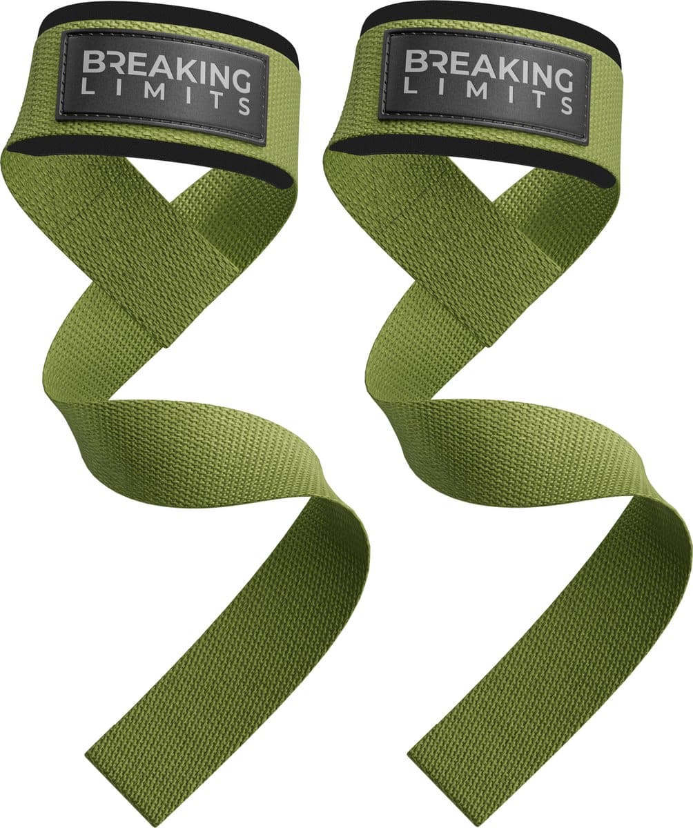 Breaking Limits Lifting Straps - Lifting Grips/Hooks - Deadlift Straps - Lift Straps - Fitness, Crossfit & Krachttraining - 2 Stuks - Militairgroen