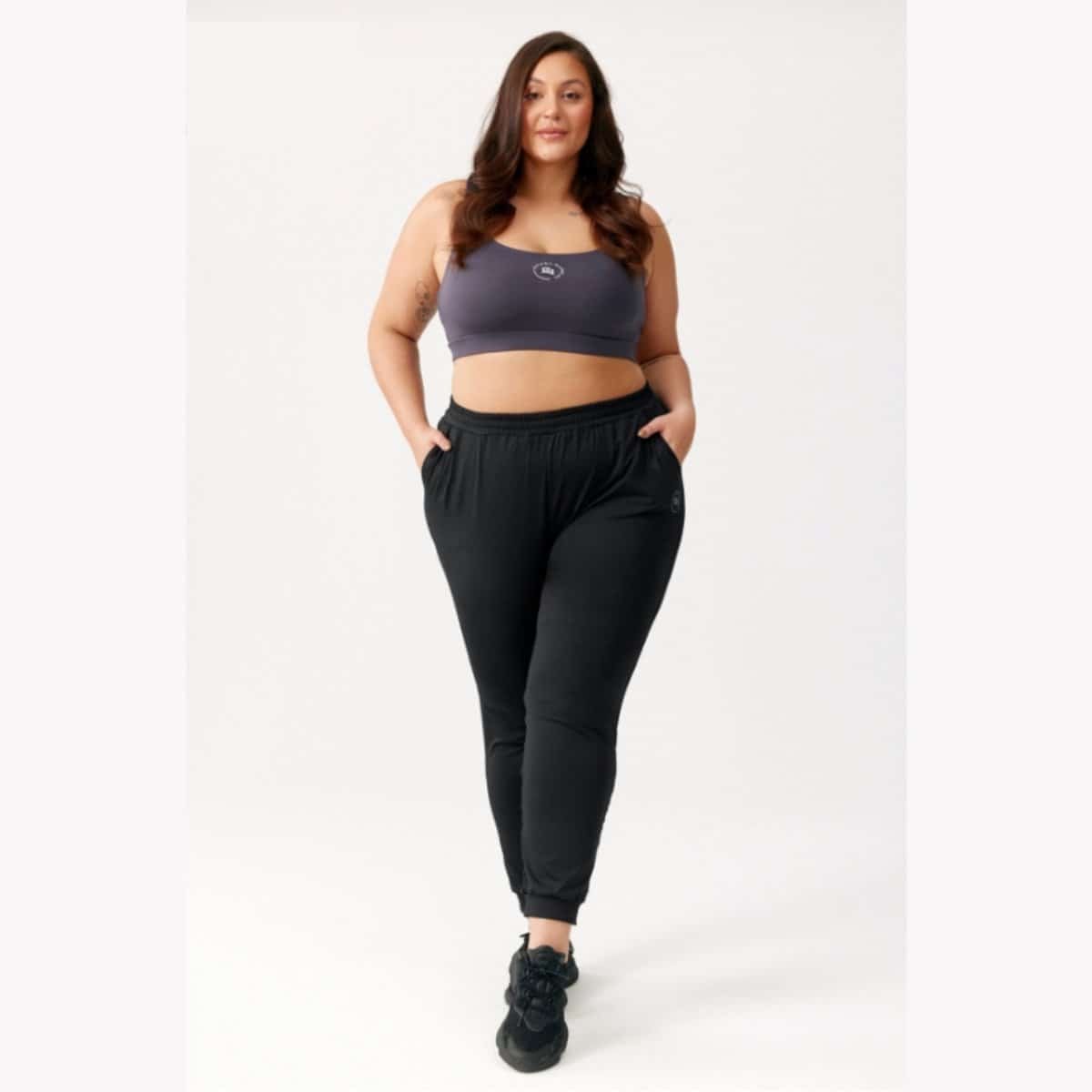 PLUS SIZE trainingsbroek met praktische zakken en een trekkoord. Gemaakt van ademend materiaal van de hoogste kwaliteit.