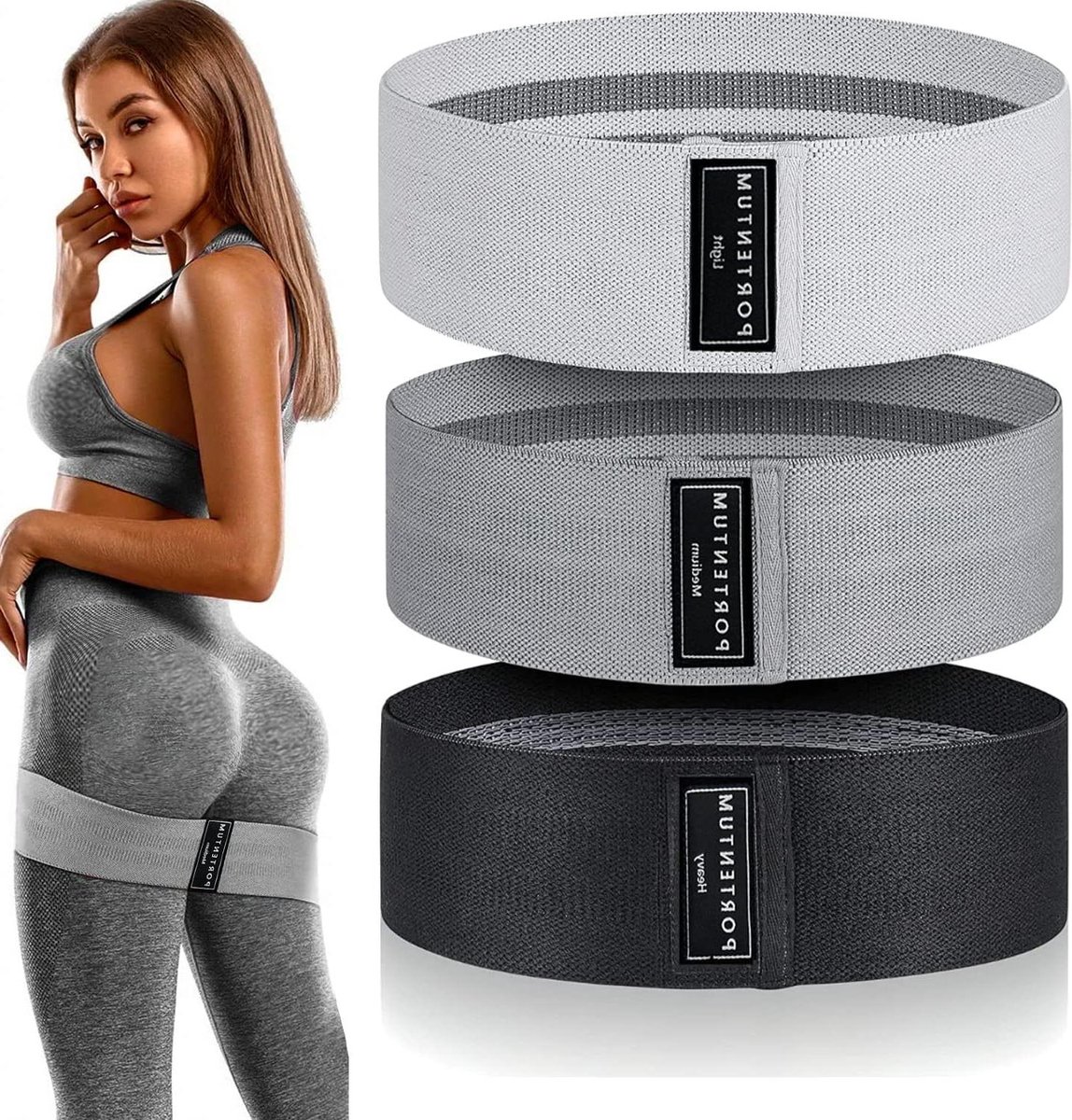 Elastische banden voor spiertraining – 3 stuks antislip van stof – weerstandsniveaus – crossfit yoga galvaniseren – opbergtas