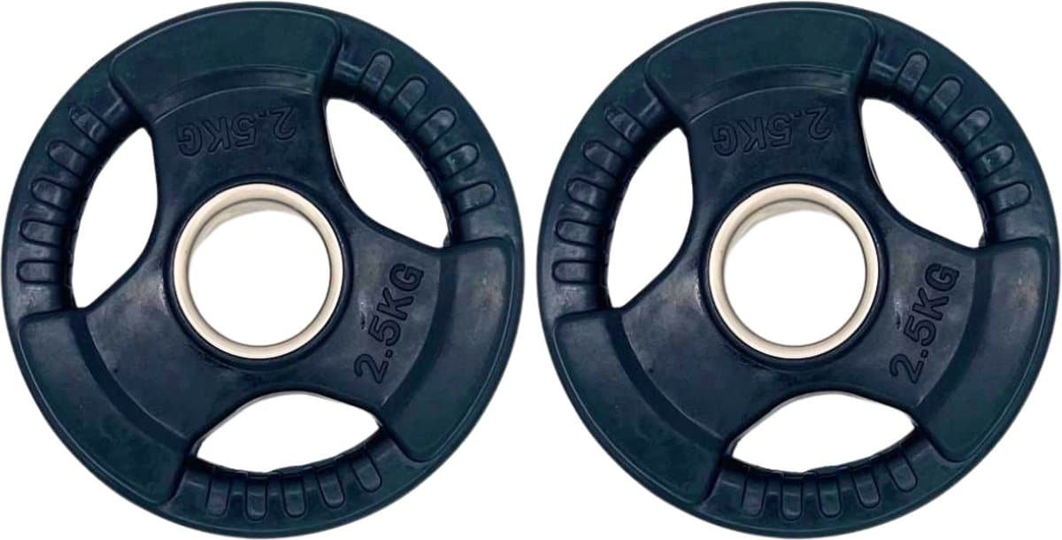 Set van 2 Stuks: Deze set bevat twee halterschijven van 2,5 kg, waardoor je direct een complete set hebt voor je trainingsroutine. Combineer ze met andere gewichten om je eigen halterset samen te stellen.