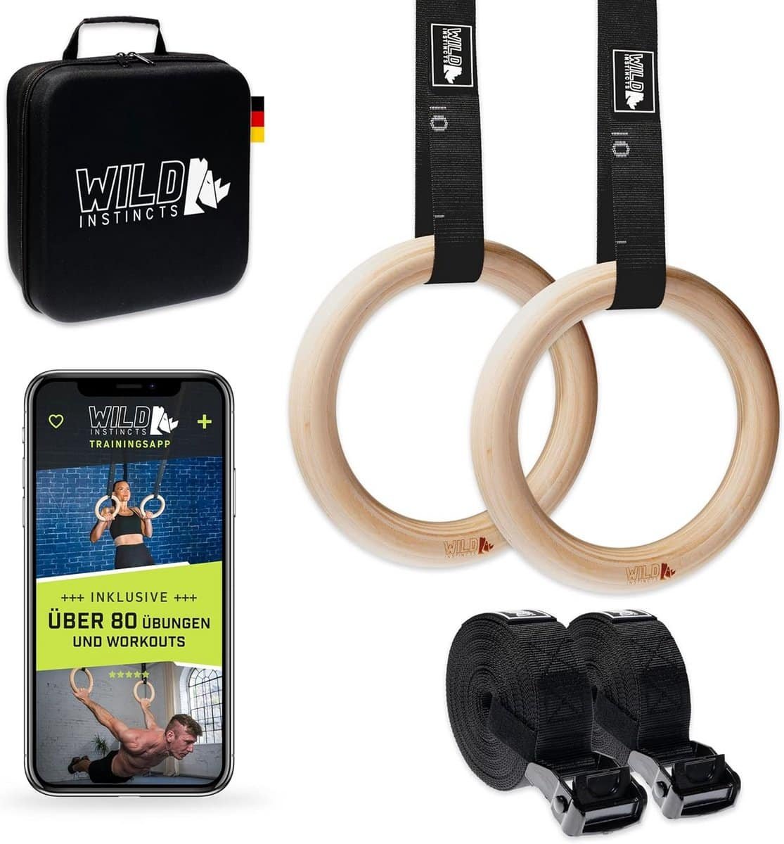 Houten Turnringen en CrossFit Ringen met WebApp – Trainingsringen inclusief 5m Riemen en Draagtas