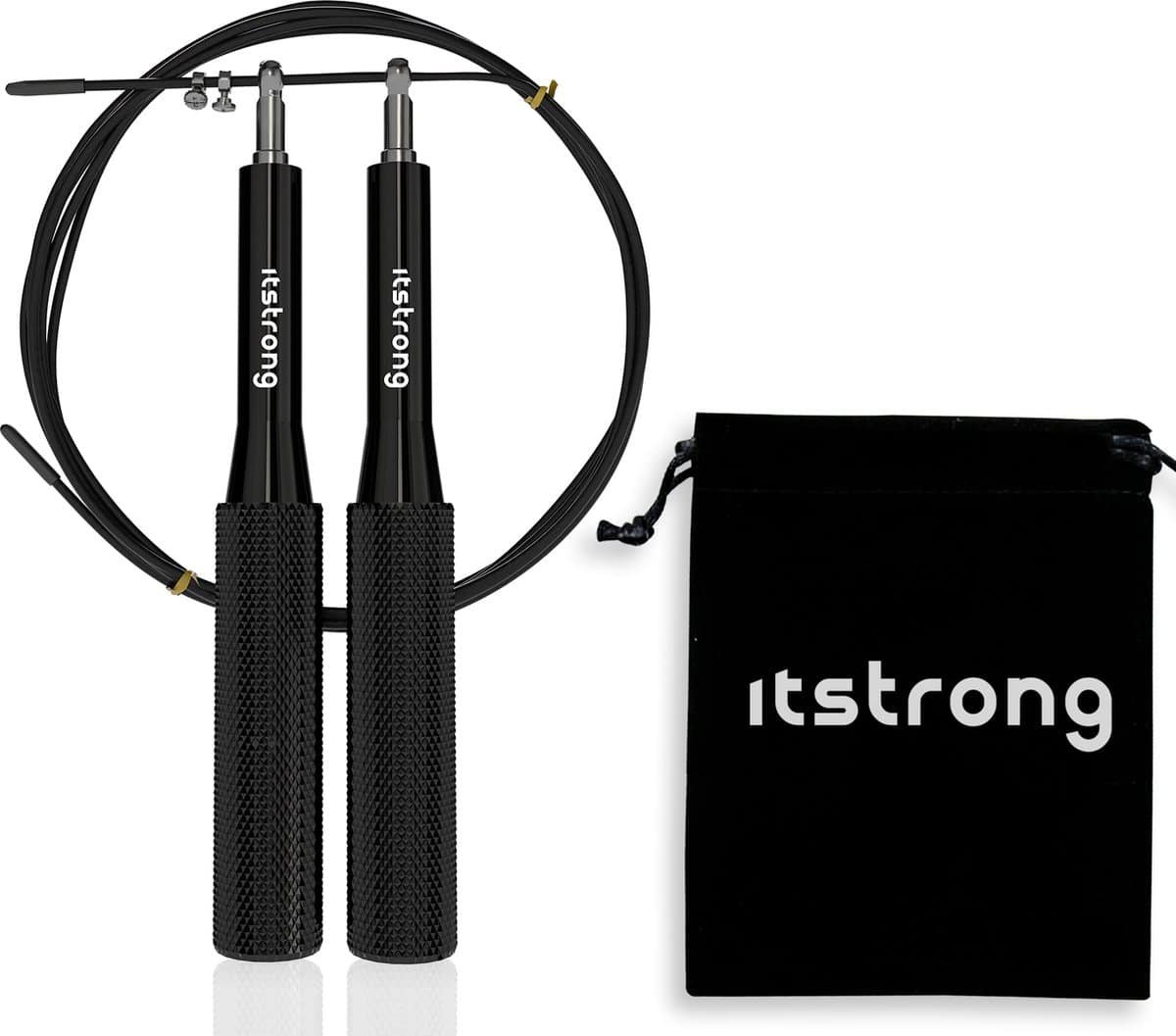 Itstrong Springtouw voor Volwassenen - Professioneel Sport Speedrope - Crossfit - Boksen - Fitness - Verstelbaar - Zwart