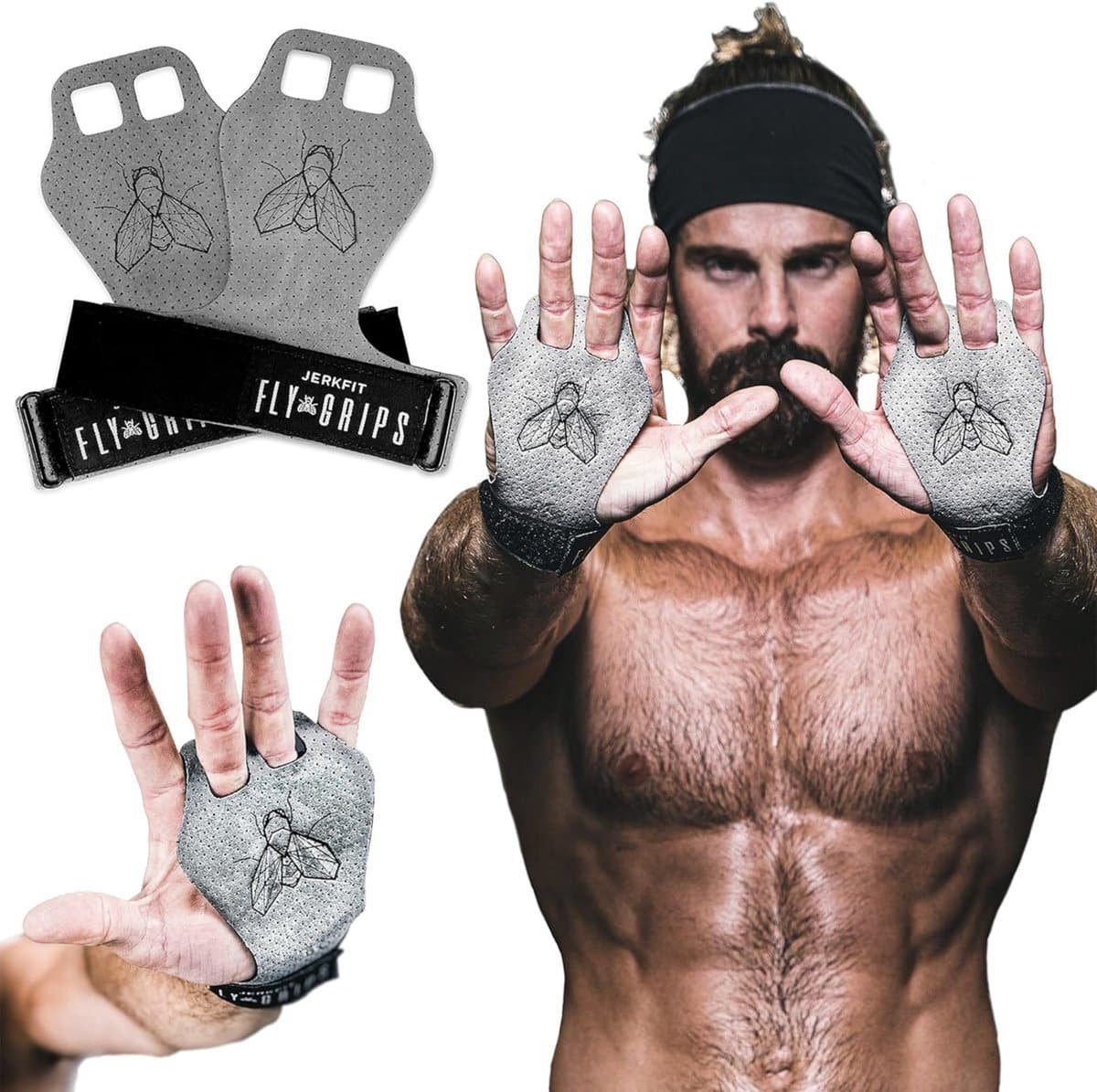 JerkFit Fly Grips – vegan 2-vinger handgrips voor pull-ups, CrossFit & gewichtheffen – maat XL