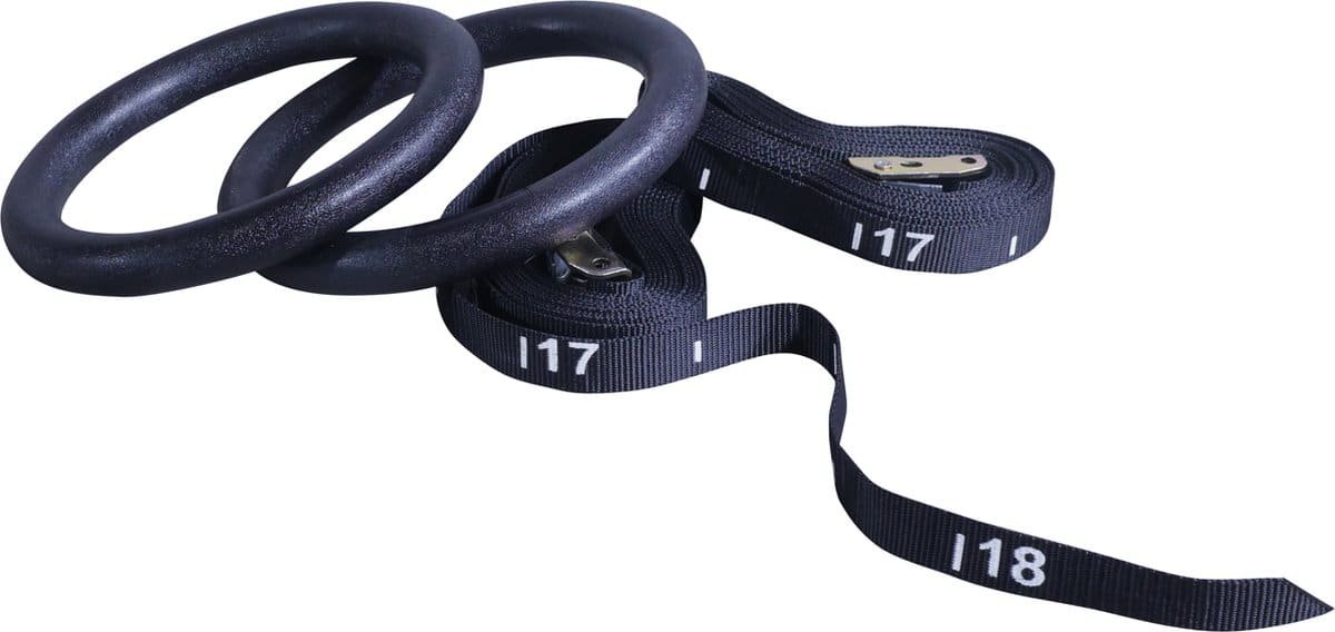 De ringen zijn zowel buiten als binnen te gebruiken. Dankzij de bijgeleverde straps hang je de ringen op waar jij dat wilt en door de stevige stalen gespen hoef je je geen zorgen te maken over de veiligheid. Daarnaast zijn de straps voorzien van markeringen zodat je deze altijd op gelijke hoogte kunt hangen. De totale lengte van de straps is 5 meter.