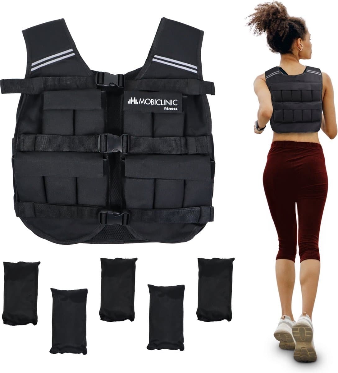Mobiclinic Iron10 – Verstelbaar Gewichtsvest 10kg – Gewichtsvesten – Weight vest – Gewichten – Krachttraining & Crossfit Trainingsvest – Ademend – Gewatteerd – Aanpasbaar – Zwart