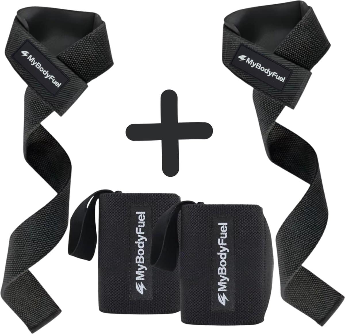 MyBodyFuel – Lifting Straps + Wrist Wraps Bundel – Fitness, Crossfit & Krachttraining – Zwart