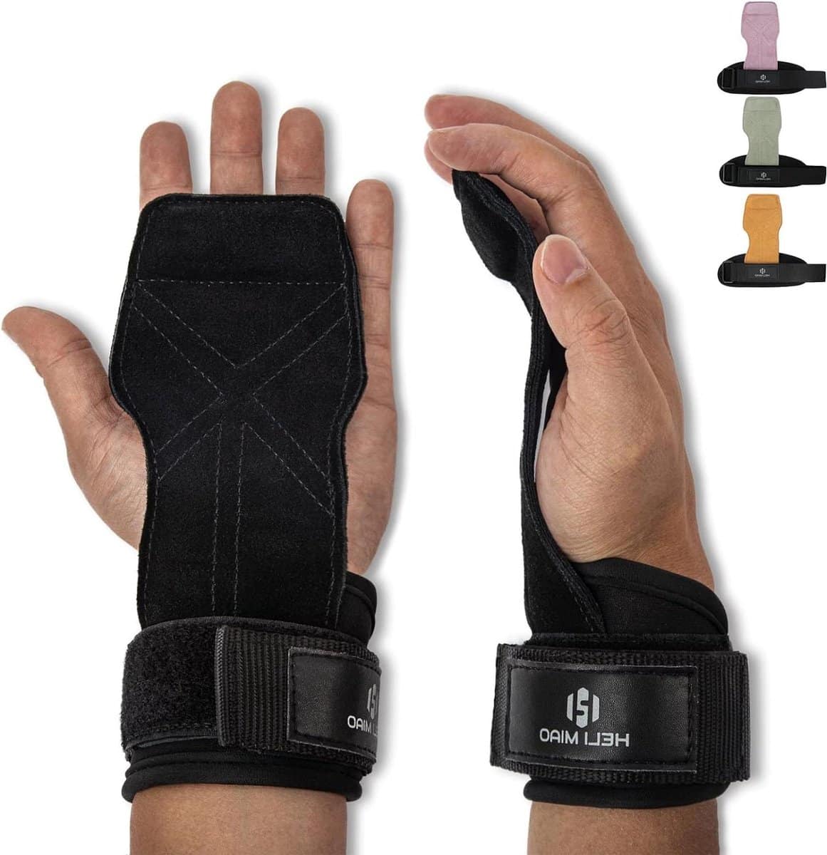 Power Trekhulp Fast Grip lederen trap-polsbandage voor krachttraining – bodybuilding fitness crossfit powerlifting – zwart