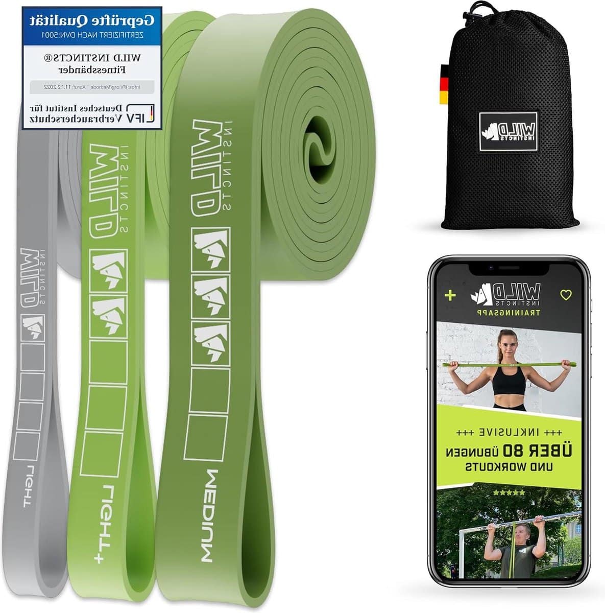 Premium weerstandsbanden – krachttraining pull-up band voor pull-ups – fitnessbandenset voor weerstandstraining – sportband voor crossfit en stretching – inclusief tas en trainingsprogramma
