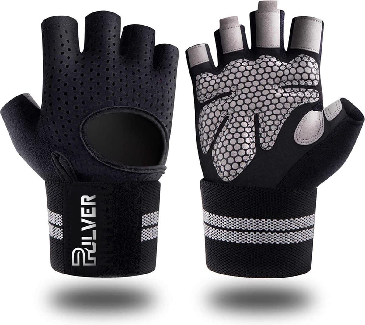 Pulver – Fitness Handschoenen – Heren & Dames – Krachttraining – Crossfit – sport handschoen – Kracht – Grijs & Zwart – Sport Maat S