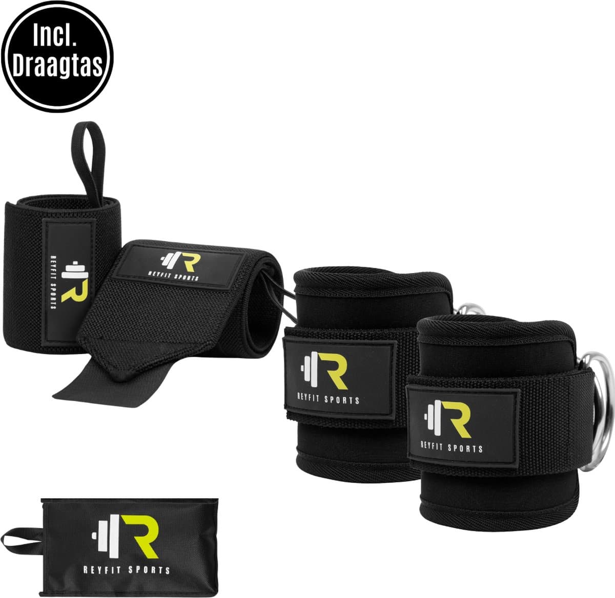 ReyFit Sports 2x Ankle Straps & 2x Wrist Wraps Bundel | Fitness accessoires | Crossfit | Krachttraining | Zwart