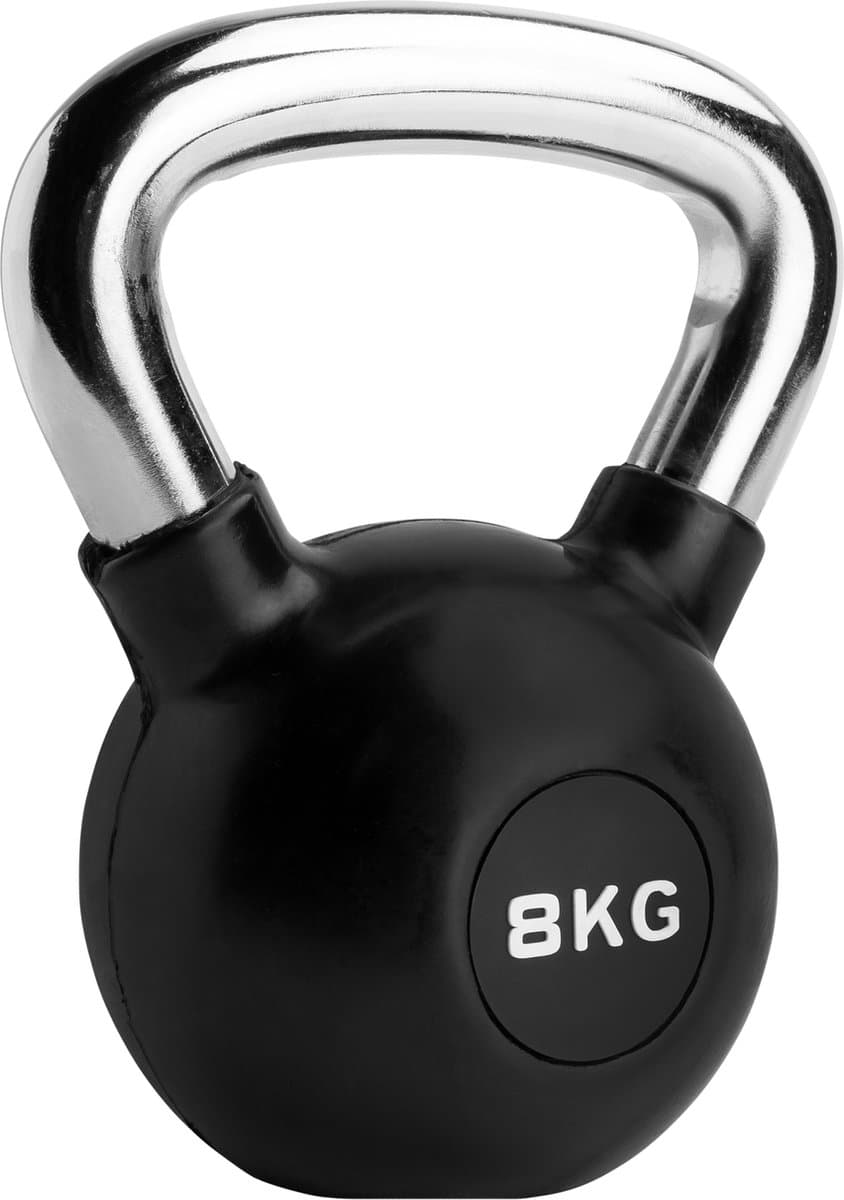 RYZOR Kettlebell van 8 kg – Kettlebell voor crossfit – Bootcamp gewichten – Gewichten – Kogelhalter – Fitness gewichten – Kettlebell gewicht – Kettlebells 8 kg – Voor binnen en buiten – Halters en gewichten – Rubber en staal – Zwart en zilver