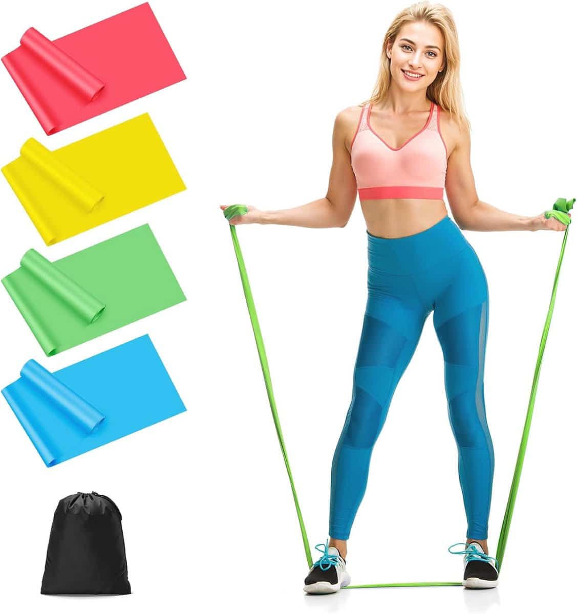 Set van 4 Fitnessbanden voor Weerstands-training, 1,8 m Gymnastiekbanden met 4 Weerstandsniveaus voor Crossfit, Spieropbouw, Yoga en Pilates