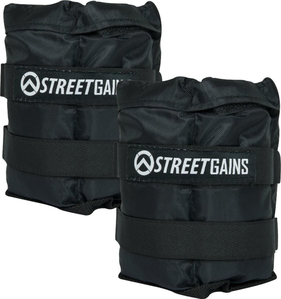 Compacte enkelgewichten De StreetGains Enkelgewichten 5KG zijn gemaakt van slijtvaste heavy-duty nylon, gevuld met stalen korrels. De zware korrels zijn verdeelt over vier compartimenten. Hierdoor hebben de enkelgewichten de flexibele eigenschap, die ervoor zorgt dat deze zich gemakkelijk om de enkels heen laten vouwen. De gewichtsmanchetten zijn voorzien van dubbele klittenbandsluitingen en stalen clips waarmee deze secuur kunnen worden vastgemaakt. De StreetGains Enkelgewichten 5KG zijn uitgevoerd in de kleur zwart en voorzien van een gewichtsaanduiding om het gewicht makkelijk te herkennen. De set bestaat uit twee stuks met elk een gewicht van 2.5 kilogram.