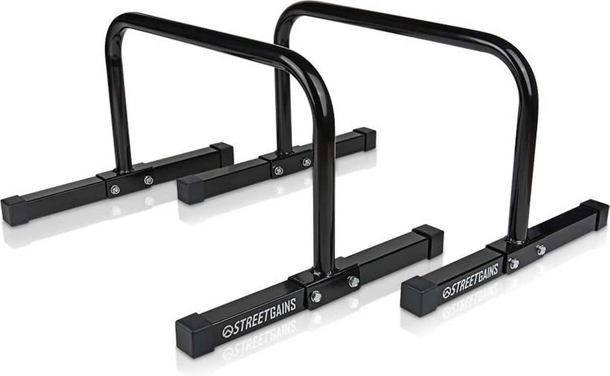 Geinspireerd op de ‘brug’ De StreetGains® Stalen Parallettes zijn geïnspireerd op de brug, het toestel die we kennen uit de turnwereld. De parallettes zijn te gebruiken bij calisthenics, CrossFit, turnen of bodyweight fitness. Met de StreetGains Stalen Parallettes kunnen onder andere push-ups, dips, L-sits, een planche of handstand worden uitgevoerd. De StreetGains Stalen Parallettes mogen dus niet ontbreken in jouw training!