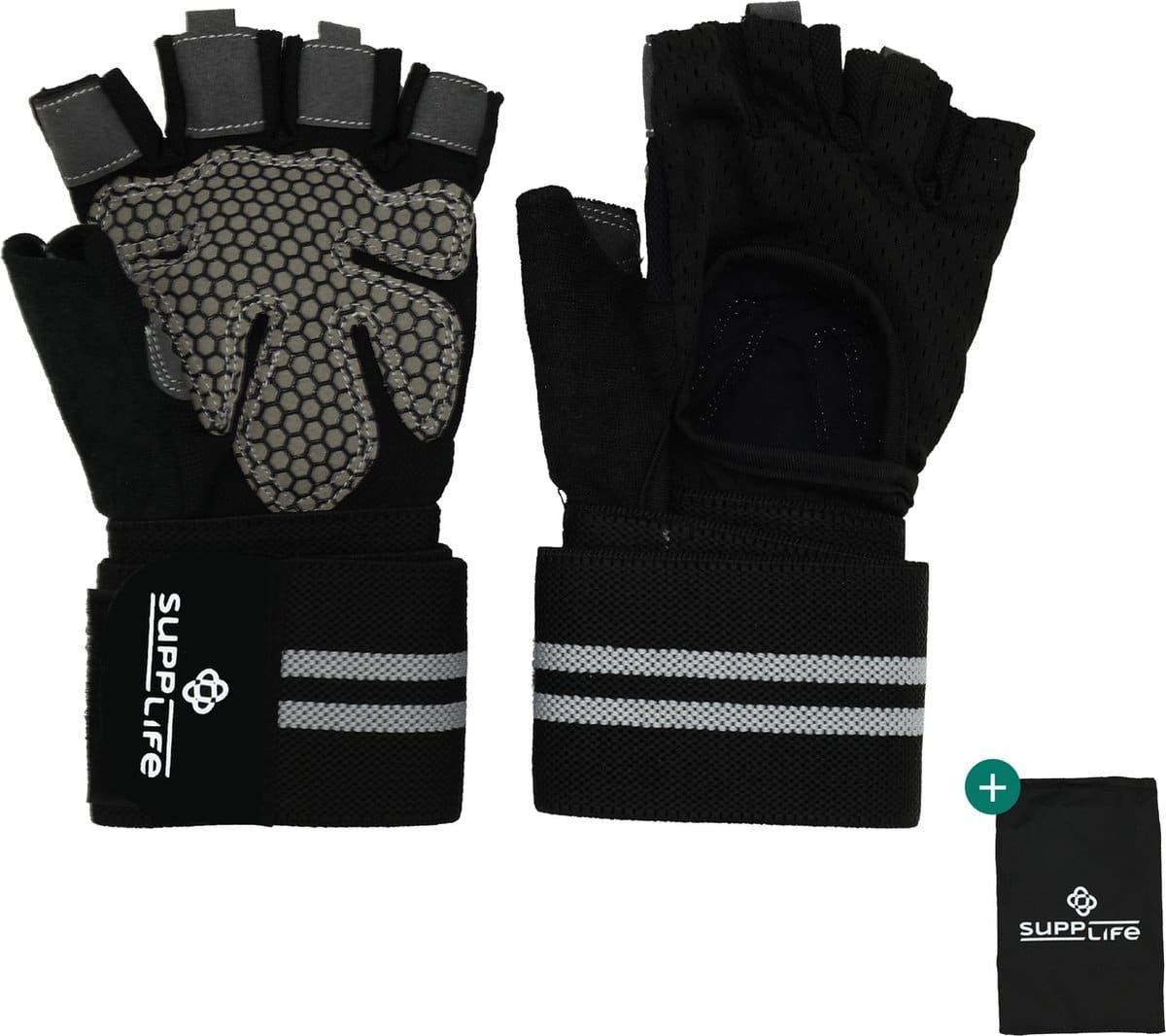 Supplife Sport & Fitness Handschoenen Heren & Dames – Krachttraining – CrossFit – Zwart & Grijs – Inclusief Opbergzakje – Maat S