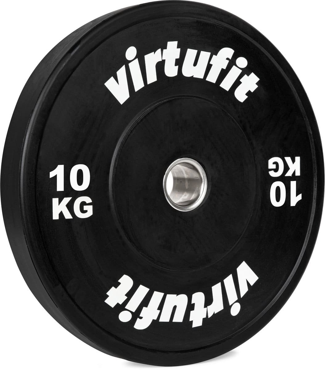 De Bumper Plates van VirtuFit zijn gemaakt van 100% rubber, gebonden met pur en hebben een gietijzeren binnenring. Dankzij het stevige rubber gaan de bumper plates jarenlang mee.