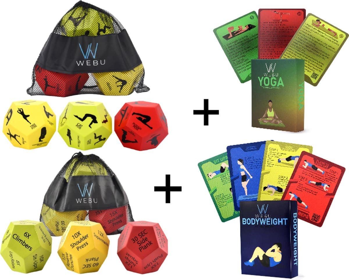 WEBU Yoga Dobbelstenen + Workout Dobbelstenen + Yoga Trainingskaarten + Bodyweight Workout Kaarten - Meditatie - Bal / Pilates - Thuis Sporten - Fitness - Crossfit - Yogamat - Incl. GRATIS Professionele video's