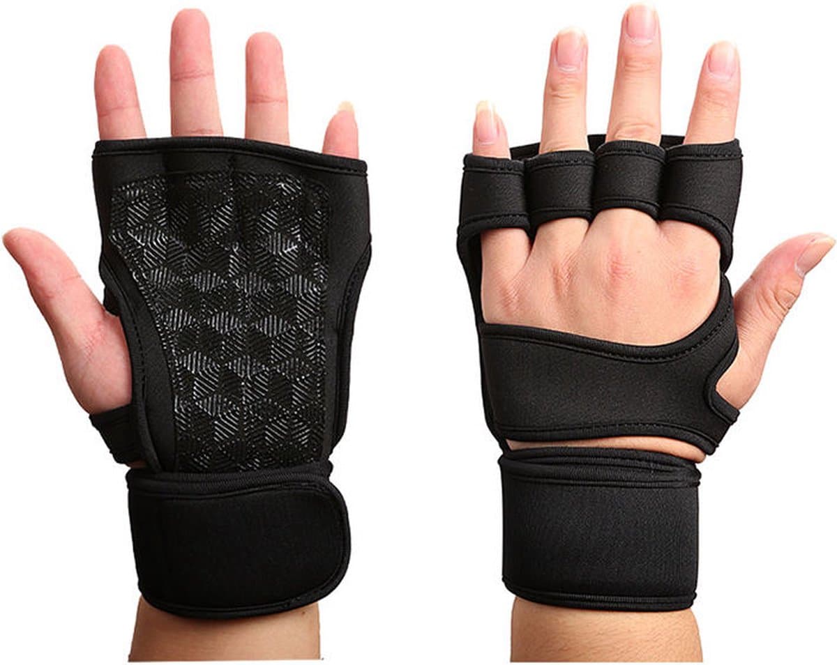 Wow Peach – Sport Fitness Handschoenen – Krachttraining – Crossfit – Grip Gloves – Unisex – Zwart – Maat: Large