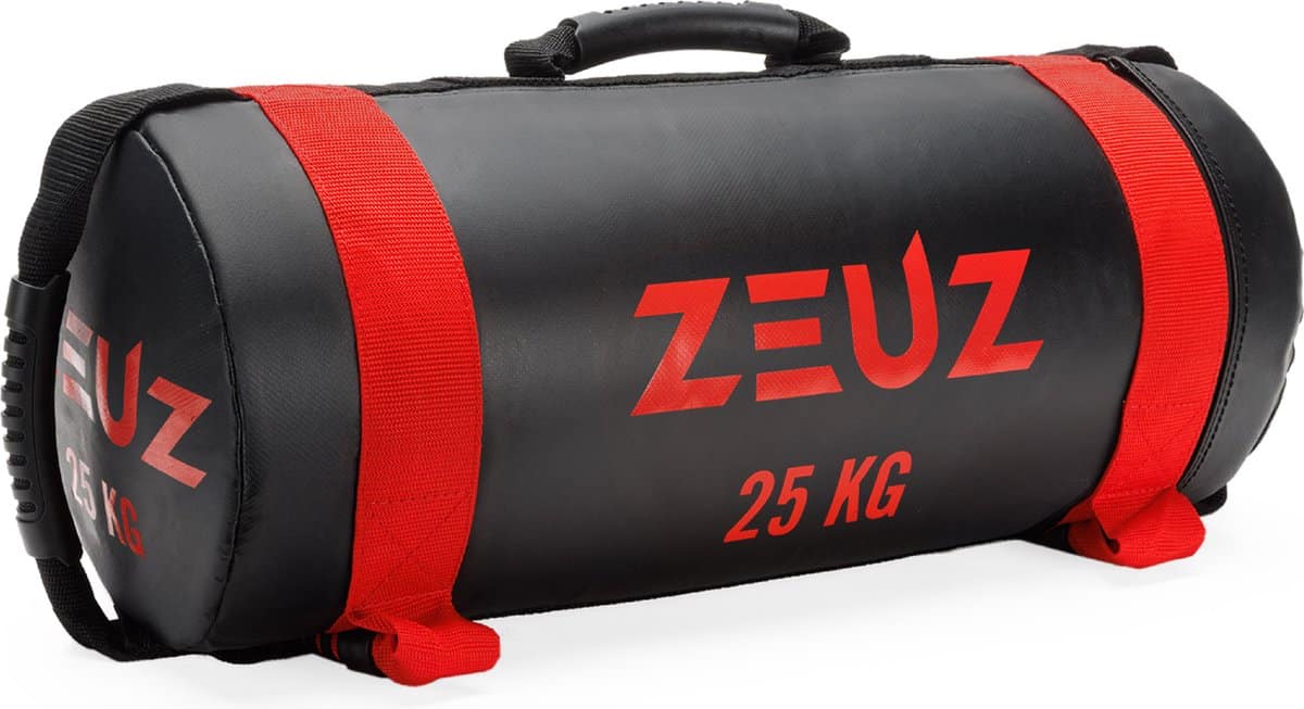 ZEUZ Powerbag 25 KG - Core Power Bag voor Fitness & CrossFit - Sandbag & Gewichtzak - 55 x 22 cm - Zwart & Rood