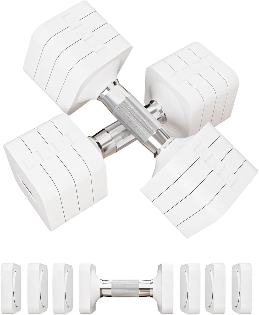 Deze 4-in-1 verstelbare halterset is perfect voor zowel mannen als vrouwen die thuis of in de sportschool willen trainen. Dankzij het eenvoudige en compacte ontwerp zijn de halters gemakkelijk op te bergen zonder veel ruimte in te nemen. De set bestaat uit 8 gewichten met een instelbaar bereik van 2 kg tot 10 kg, waardoor je snel het gewenste gewicht kunt instellen dankzij het gebruiksvriendelijke mechanisme en de veiligheidsvergrendeling. De vierkante gewichtsblokken maken veelzijdige oefeningen mogelijk, zoals push-ups, zonder te rollen. Gemaakt van duurzaam ABS-materiaal voor een lange levensduur, met een antislip handgreep voor extra grip en comfort tijdens je training.