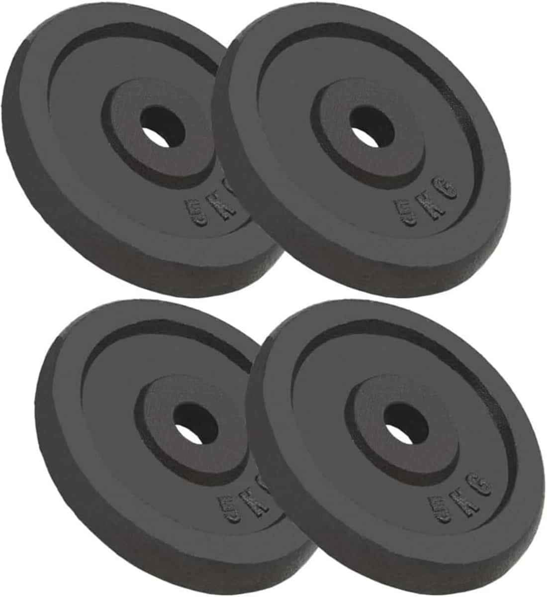 Deze set van 4 halterschijven van 5 kg is perfect voor het versterken en sculpten van spieren. Ideaal voor gebruik met een barbell dumbbell of curl stang met een diameter van 30 mm. Geschikt voor zowel thuis gebruik als in de sportschool. Gemaakt van hoogwaardig gietijzer met een krasbestendige gebakken emaille afwerking. Het gewicht is duidelijk op elke schijf aangegeven voor eenvoudige identificatie.