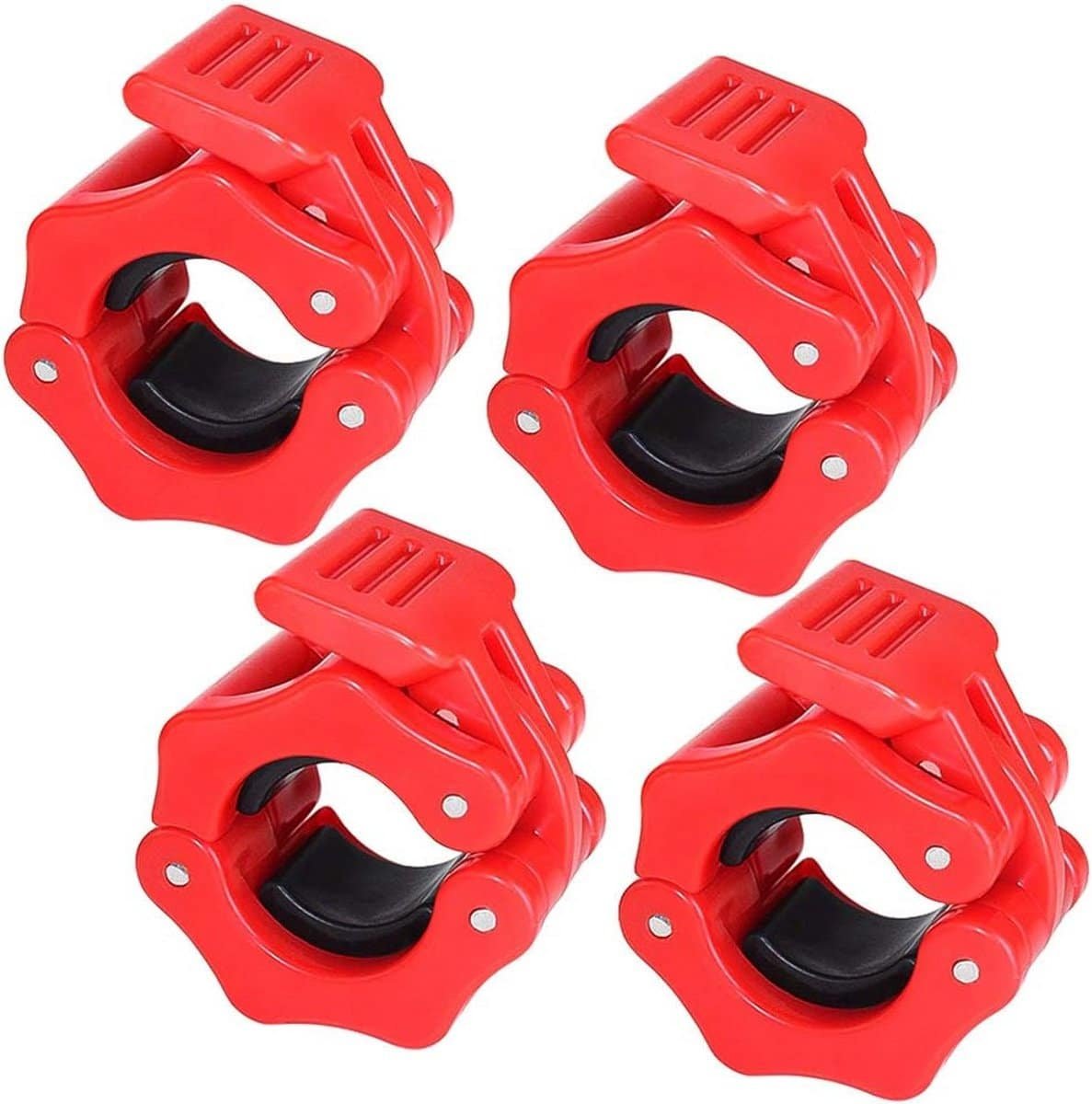 Set van 4 stevige 1-inch (25mm) halter klemmen, ideaal voor gewichtheffen, fitness en krachttraining. Deze rode clips zijn ontworpen om gewichtsschijven veilig op uw halterstang of dumbbells te bevestigen. Dankzij het snap-lock ontwerp zijn ze eenvoudig met één hand te installeren en te verwijderen, wat zorgt voor een veilige training. Gemaakt van duurzaam ABS-materiaal, minimaliseren ze schade aan uw halters en vloer. Let op: Geschikt voor stangen met een diameter van 25mm (niet voor schroefdraadstangen of 2 inch stangen). Deze set van 4 stuks helpt u met uw fitnessdoelen, zowel thuis als in de sportschool.