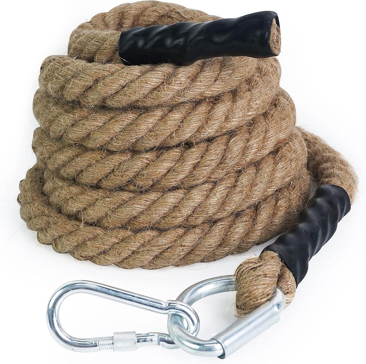 Allecta – Jute Klimtouw met Karabijnhaak 30/40/50mm, 3-9M, Krachttraining, Gevechtstouw, Spiertraining, Buitensport Accessoires