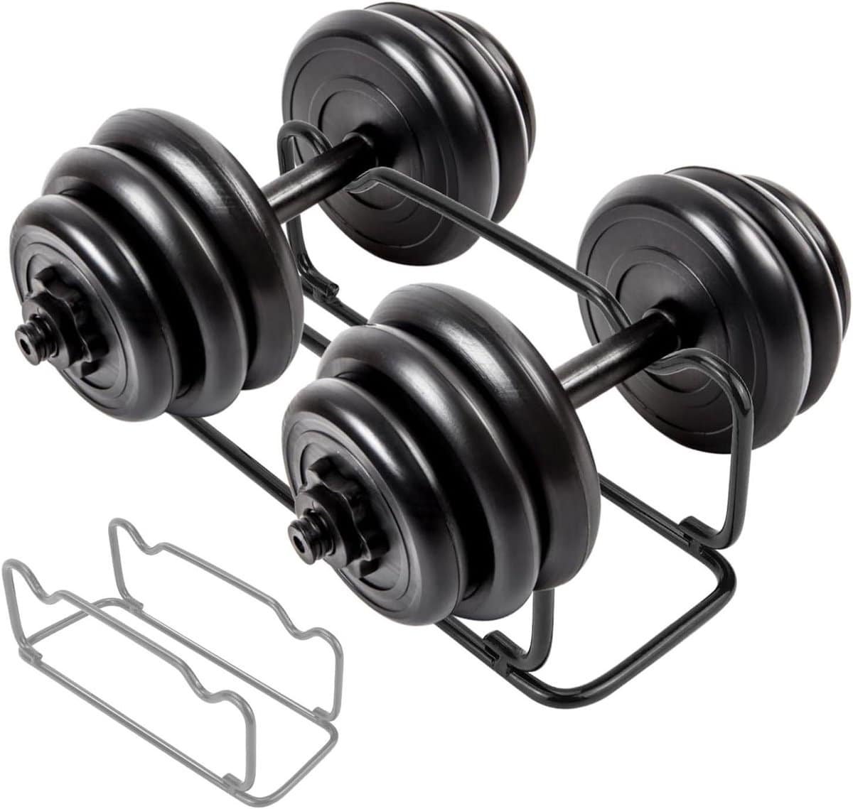 Praktische extra’s Let op: De haltergewichten zijn niet inbegrepen bij de levering. De maximale grootte van een enkele dumbbell gewichtsplaat mag niet groter zijn dan 17 cm.