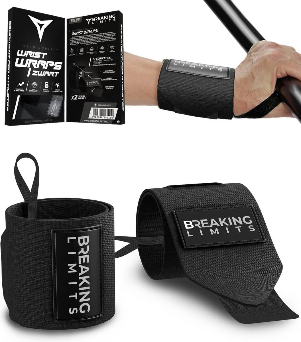 Breaking Limits Wrist Wraps voor Fitness & Crossfit – Polsbanden voor Krachttraining -Polsbrace – Zwart – 2 Stuks