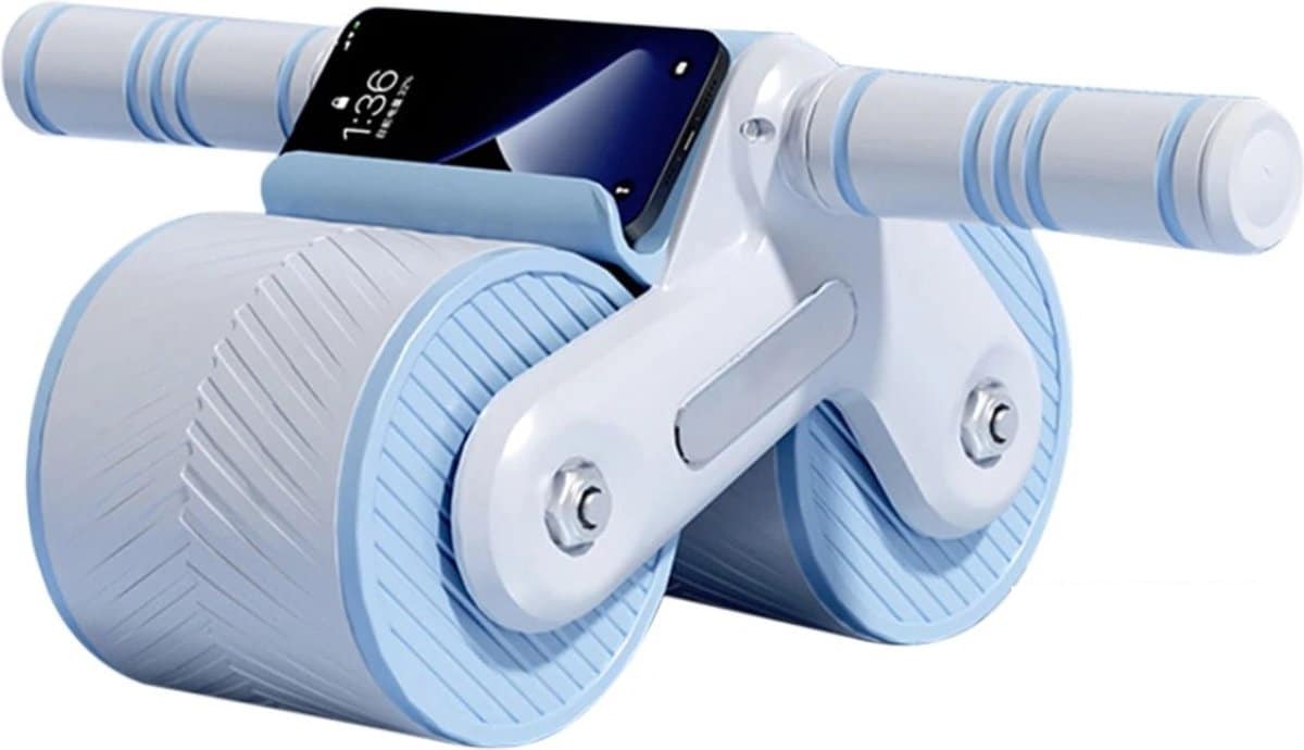 Buylin Buikwiel – Buikspiertrainer – Ab Roller – Buikspierroller – Automatische Rebound – Home Gym – Fitness – Krachttraining – incl. Telefoonhouder en kniebeschermer- Blauw Zwart