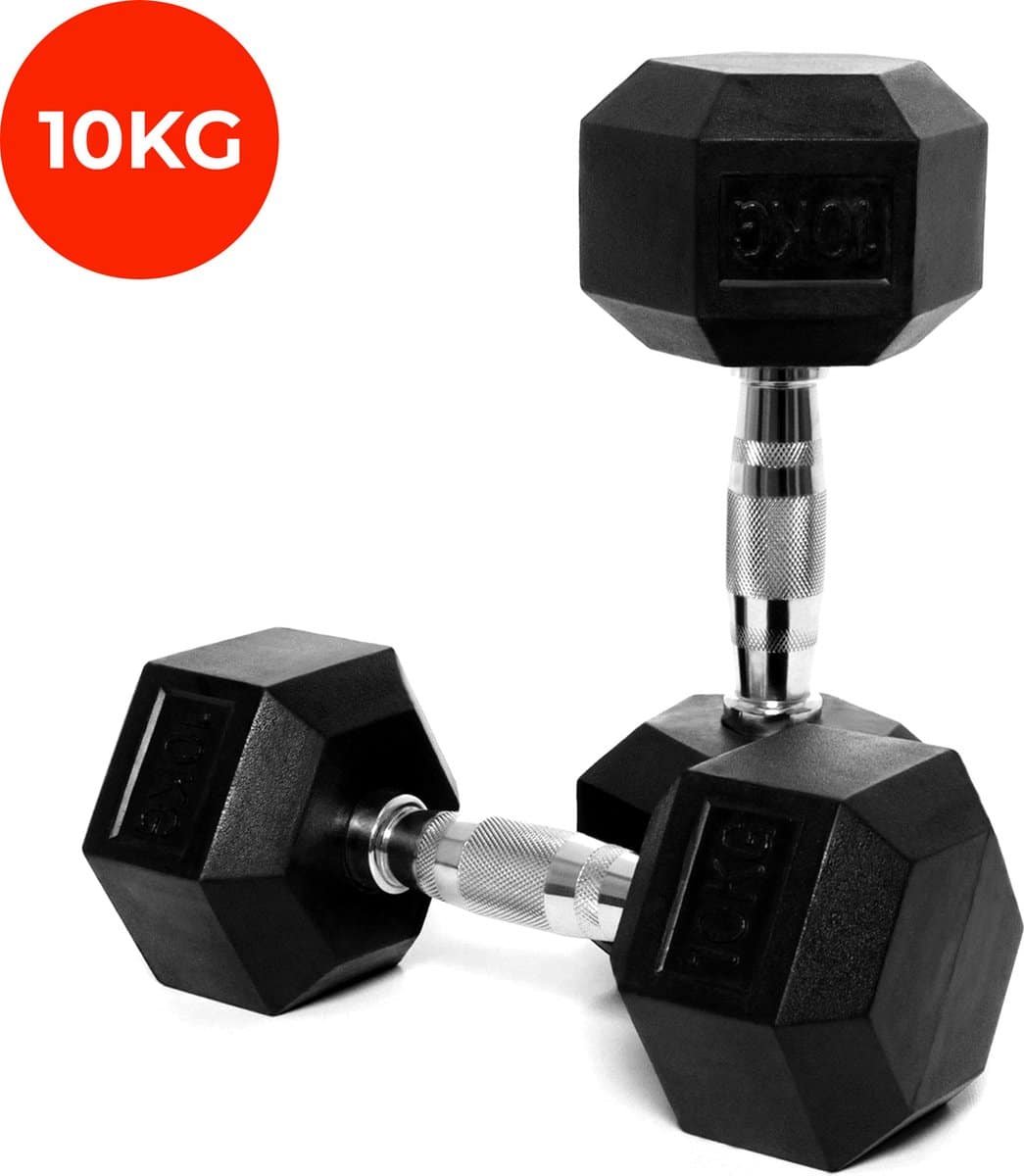 Core Power – Rubber Hex Dumbbells – 10 kg – Dumbbell set – Krachttraining – Halterset