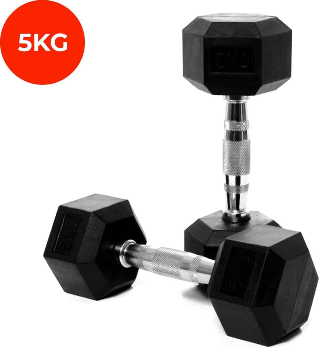 Core Power – Rubber Hex Dumbbells – 5 kg – Dumbbell set – Krachttraining – Halterset