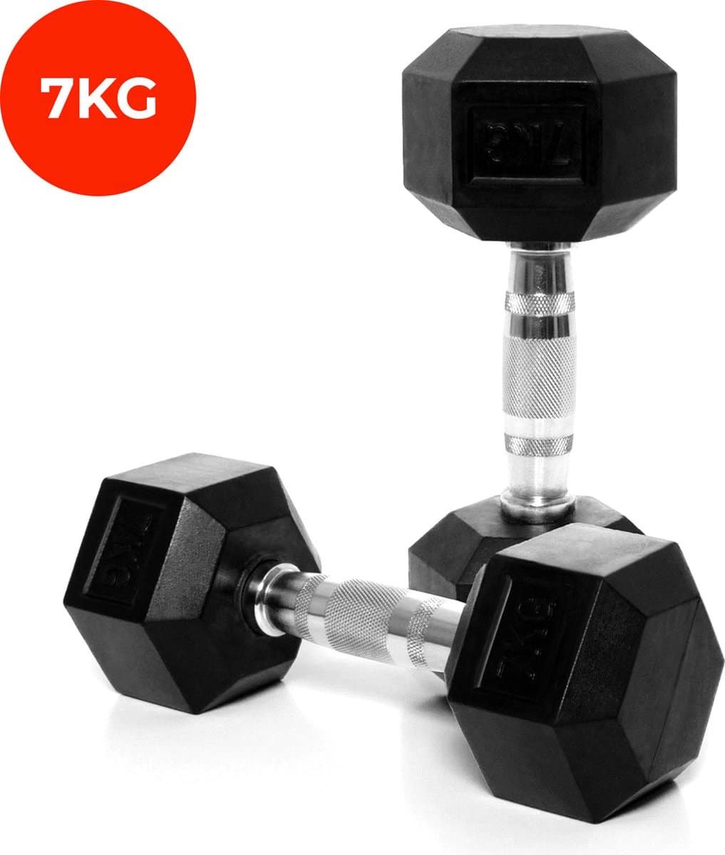 Core Power – Rubber Hex Dumbbells – 7 kg – Dumbbell set – Krachttraining – Halterset