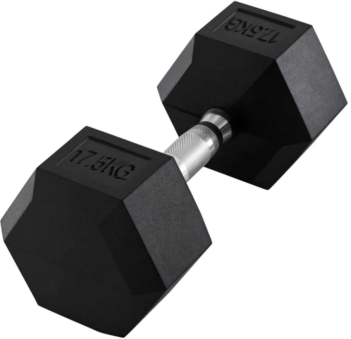 Productspecificaties: Gewicht van de halter: 1 x 17,5 kg; Lengte handgreep: 12,8 cm; Zeshoekige afmeting: Ø 16,2 cm (diagonaal)