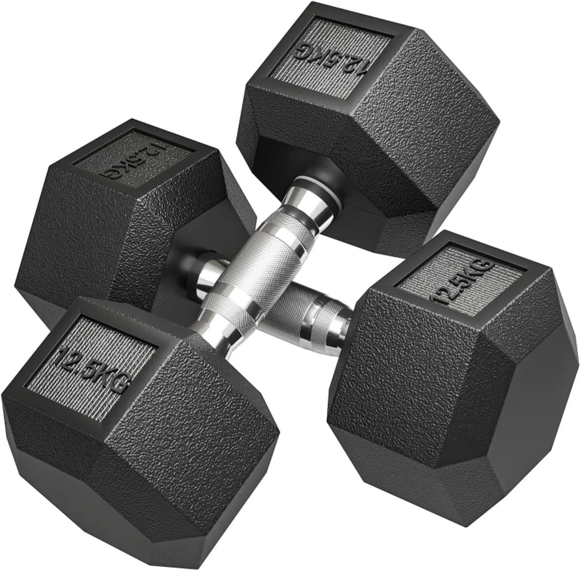 Deze zeshoekige dumbbells met rubberen handgrepen zijn perfect voor je fitnessroutine en geschikt voor trainingen thuis, in de sportschool en op kantoor. Elke dumbbell is gemaakt van metaal en rubber, waardoor ze duurzaam zijn en bestand tegen krassen op vloeren. De karteling zorgt voor veiligheid bij oefeningen zoals dumbbell curls, head jerks en triceps rebounds. Deze dumbbellset is de ideale manier om een complete dumbbell workout routine te creëren.