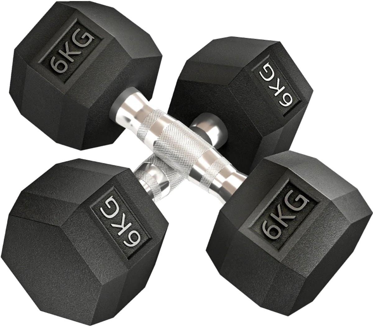 Dumbbells 2 x 6 kg – Halter – Set van 2 – Hexagonaal Design – met Gekartelde Handvatten – Gewichten Set – Halterset – Dumbbell Set – Krachttraining – Fitness – Gym – Geschikt voor Thuis en Sportschool