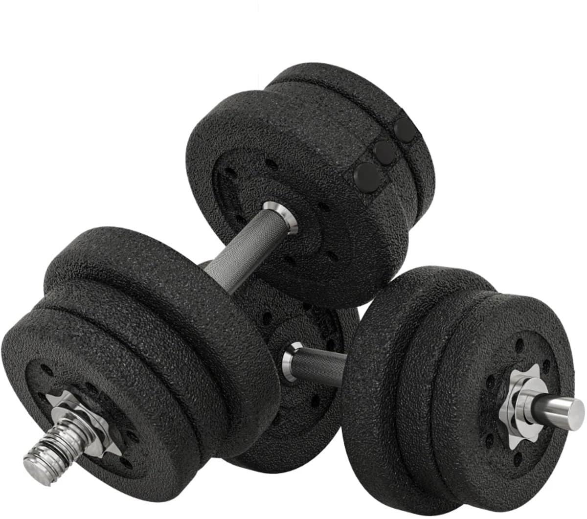 Complete set: Deze dumbbellset wordt geleverd met 4 x 2,5 kg, 4 x 1,5 kg en 4 x 1,25 kg gewichtsschijven en 2 x 2 kg verbindingsstangen. De set is geschikt voor arm-, schouder- en rugoefeningen en spieropbouw.