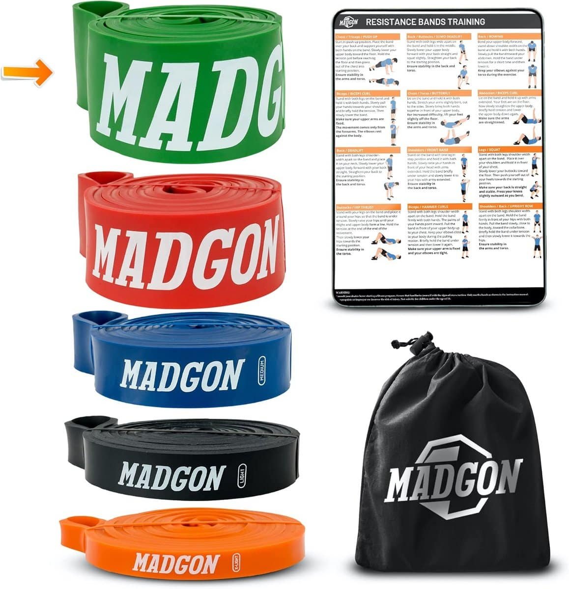 Robuuste en duurzame elastische fitnessbanden voor een effectieve krachttraining van alle spiergroepen. Verkrijgbaar in verschillende weerstanden of als complete set. Inclusief handige opbergtas en een digitale gids voor uw training. Hoge kwaliteit fitnessmateriaal voor een betaalbare prijs.