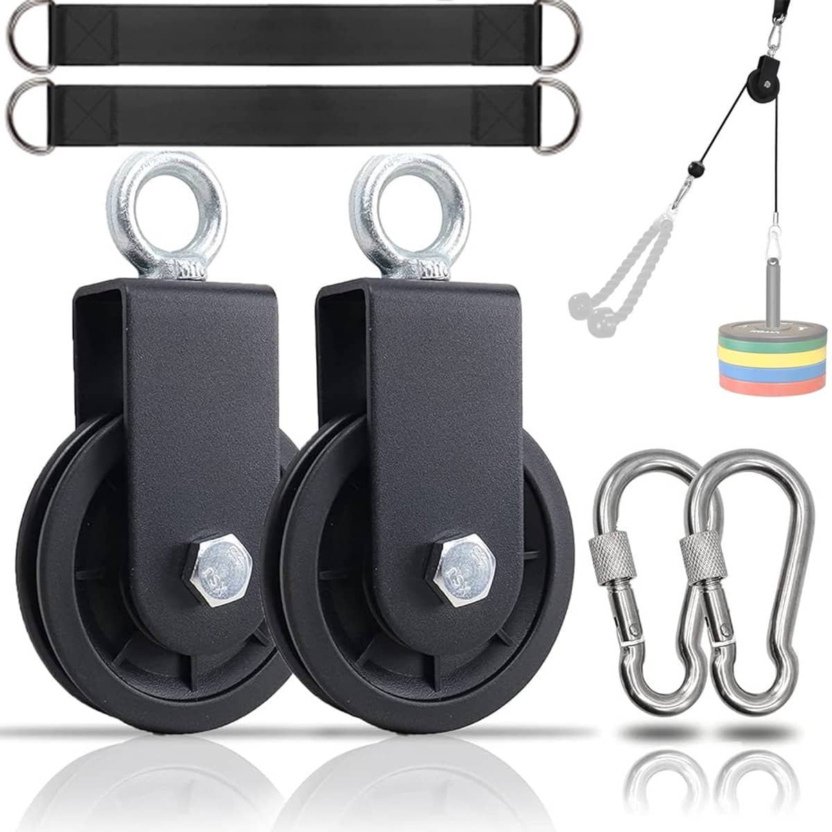 Fitness kabelsysteem – Katrol met ophangriem en karabijnhaak – Katrol – Katrollen – Katrol voor touwen – Lat pulley – 360° draaibare – Thuis sporten – katrol – Triceps – Krachttraining – Voor schommelaccessoires, waslijn, lat pull-up stang, fitness