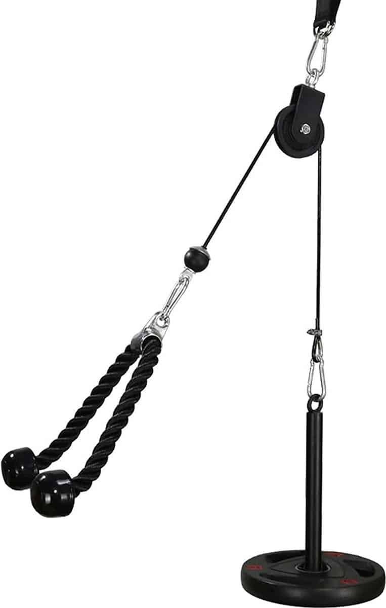 [Veelzijdige pull-up sporttoestellen]1 x gewichtspin, 1 x katrol fitness, 1 x tricepstouw, 1 x staalkabel voor fitnessapparaten, 1 x kabelbeschermingsring, 2 x beugelklem, 1 x gereedschap, 1 x ophangriem, 3 x karabijnhaak. Deze ruimtebesparende fitnesspull voor thuis kan je helpen om een intensieve kabeltraining zoals in de sportschool te doen.