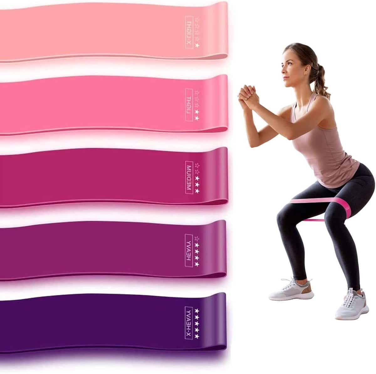 Fitnessbanden Set – 5-delige Weerstandsringen – Voor Krachttraining & Stretching – Universeel voor Thuis Fitness & Fysiotherapie – Set Weerstandsbanden (Bil- & Beenspieroefeningen)